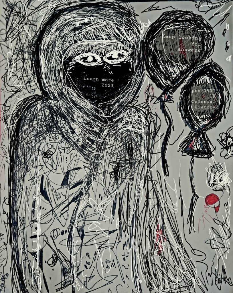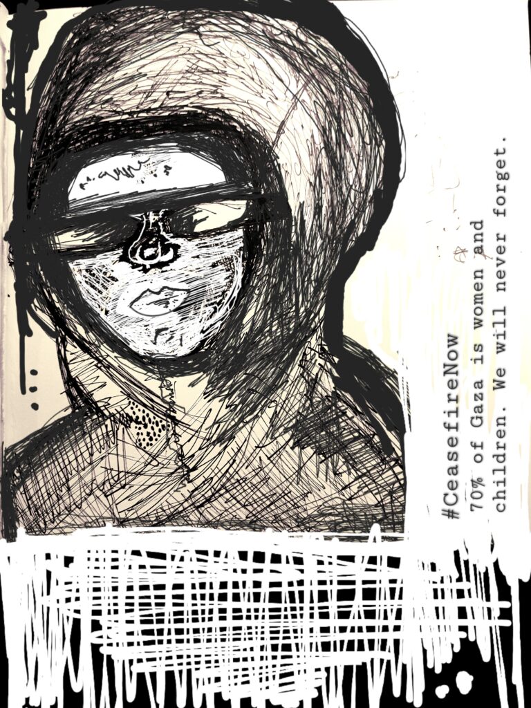 My intention was to use art to give short facts about what was happening and an attempt to connect with the women and children (albeit remotely and virtually) from my own corner of Yorkshire.