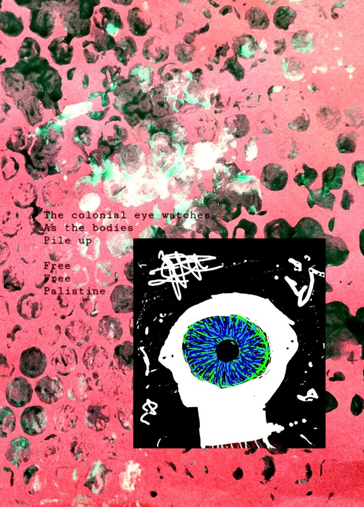 My bairns and I attended a march in the early days of the reignited conflict and I distributed some protest art. I made stickers ona little Polino printer I got to make shipping labels for small sales of my bairns’ old clothes.